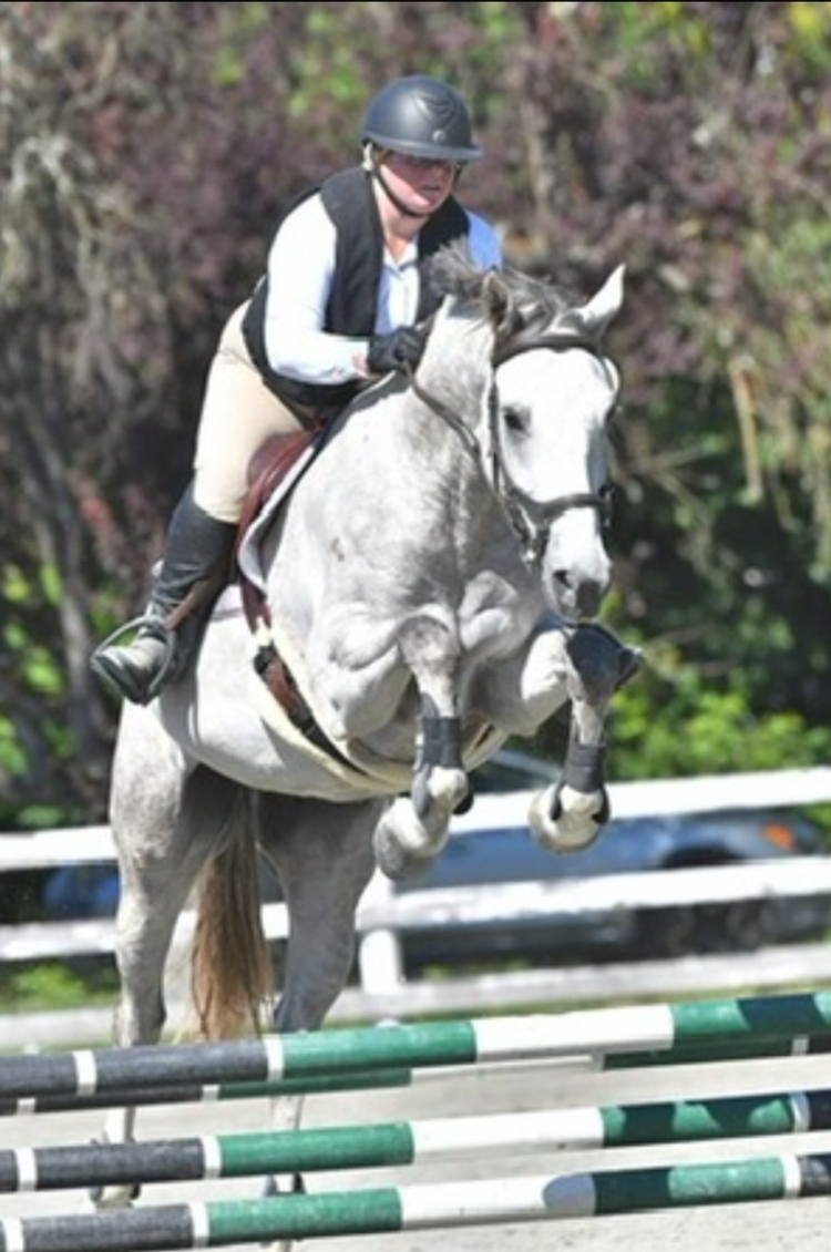 George is a 10 year old, 15.2hh Warmblood cross gelding that Rose has never quite been able to let go of. She originally sold him as a 4 year old, maintaining him in the winters, and was just recently able to take the ride over again full time. He's incredibly smart, oddly flexible, and sweet as pie. He will do anything for praise or a cookie, and is potentially made of sugar.