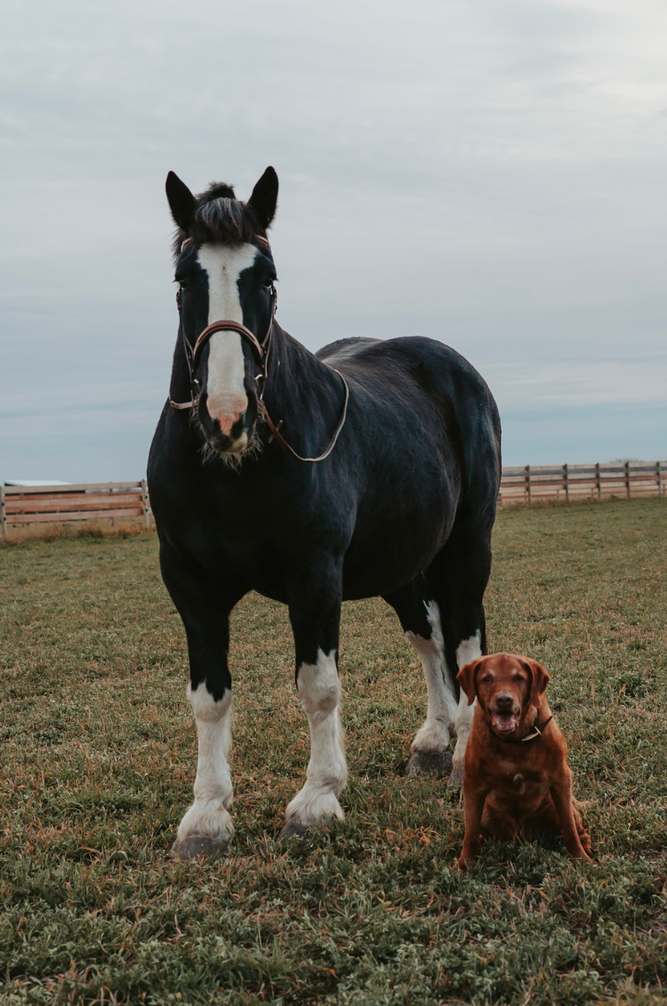 Czar is a 21 year old, 17.1hh Spotted Draft gelding. This big guy is worth his weight in gold, and truly is the most gentle giant. Czar was originally trained as a dressage horse, however he has done a bit of everything; in his younger days he loved jumping, but now we just enjoy hacking out, spending time together, and going on family walks with his canine brother. Czar is always eager to please, and truly loves his job and his people. He is as safe as they come, and is always a barn favourite! Czar's favourite treat is banana bread from Starbucks (he may have adopted Erin's taste, oops!), and his favourite pastime (weather permitting of course) is having his face misted by the hose like the king he is.