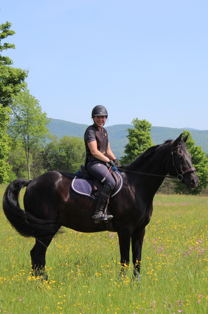 Swarenzo is a 12 year old, 16.3hh Oldenburg gelding. This guy really is the sweetest of all!! Swarenzo has a dog-like personality, and absolutely loves getting attention and kisses. He has tons of energy and is a little bit anxious, which Virginie says makes her a better rider! Virginie and Swarenzo enjoy competing in lower level eventing together, and always have a blast cruising around the xc course!