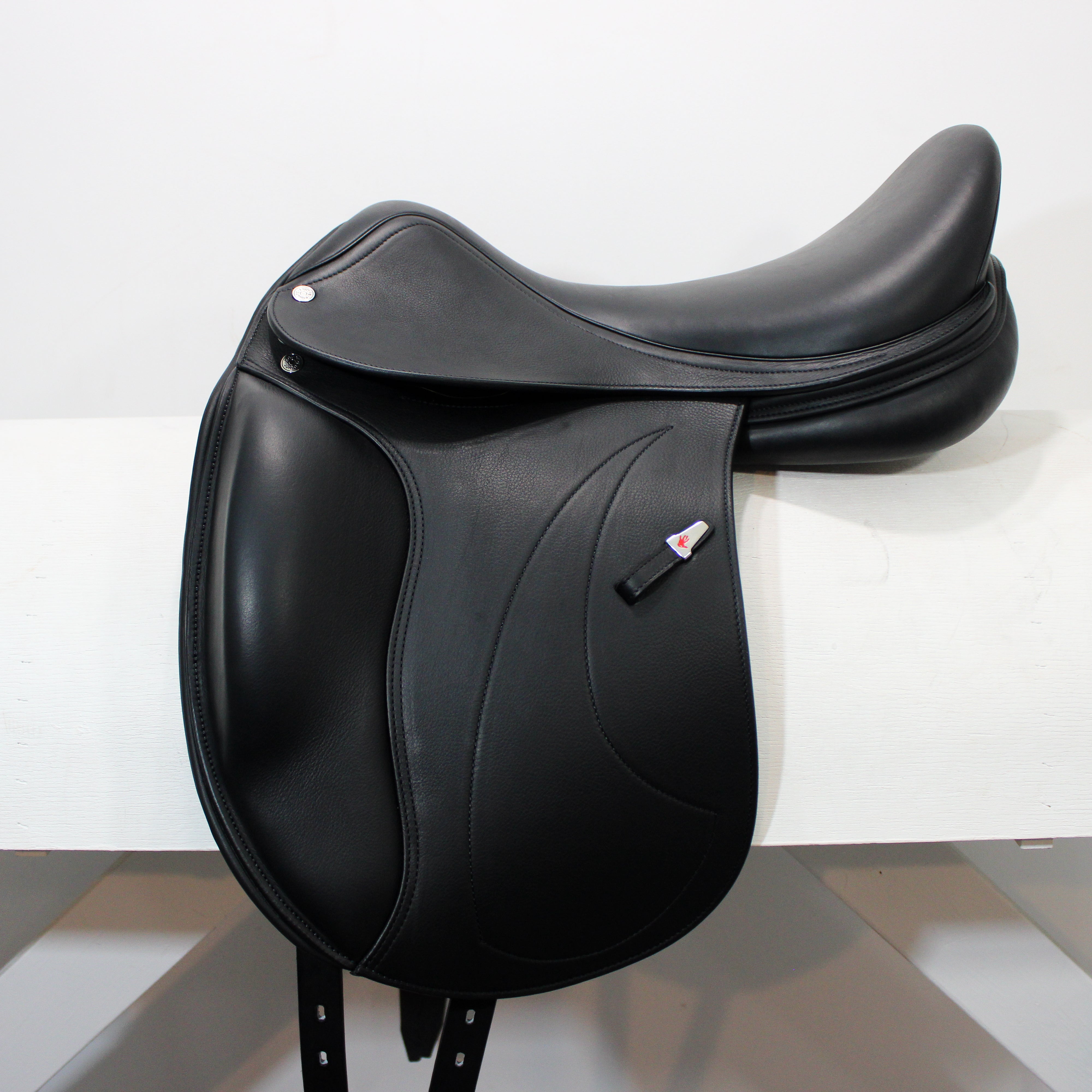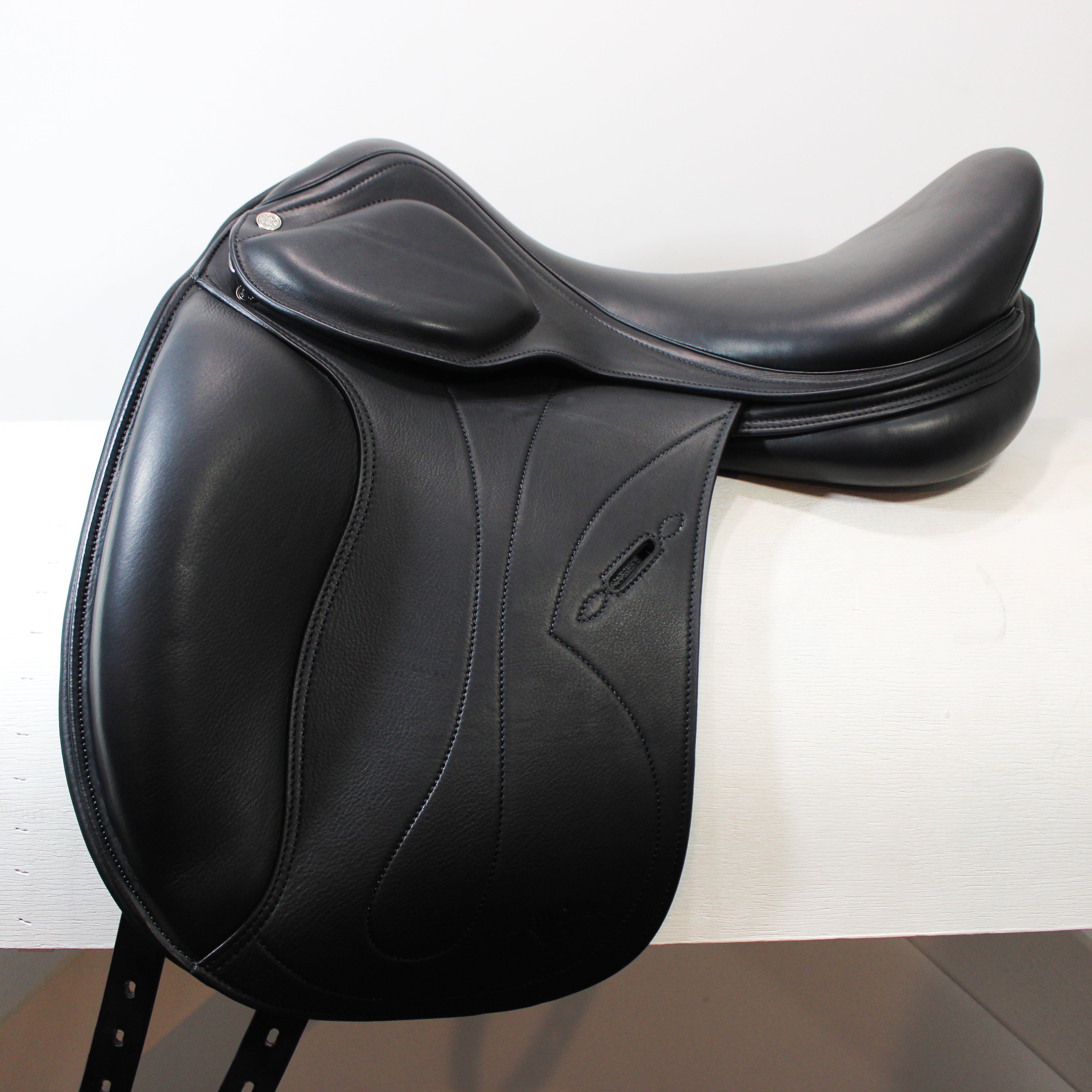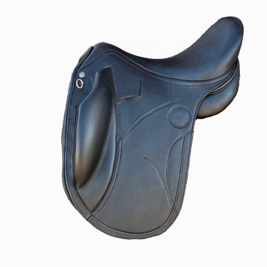 The Amerigo CC Jump is an excellent option for horses with longer withers. It’s a very popular option among thoroughbred owners, and with its many adaptable options for both horse and rider, it allows you to feel comfortable and effective while in the saddle. This seat offers a medium twist with medium depth, and the tree lies in contact with straighter backs while rising towards the cantle, allowing your horse maximum flexibility especially over larger jumps. Equipped with 4 billets, a wooden tree with an iron head, and interchangeable (by a fitter) panels, this saddle offers adaptability throughout its lifetime. Adjustable in tree width, flap position/length, and seat size.